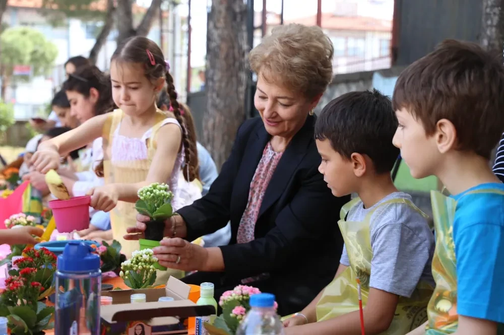 Başkan Yardımcısı Ayten Tuna, öğrencilerle tek tek ilgilenerek onlara çiçek dikiminde eşlik etti.