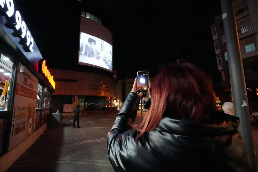 Balıkesir Büyükşehir Belediyesi tarafından Ulu Önder Gazi Mustafa Kemal Atatürk’ün Balıkesir’e gelişinin yıldönümünde belediye binasına yansıtılan, Ata’nın Balıkesir’e geldiği güne dair sinevizyon gösterimini izleyen vatandaşlar duygusal anlar yaşarken fotoğraf çekerek o anları ölümsüzleştirdi.