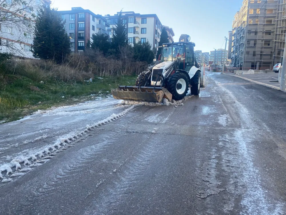 Soğuk havanın etkisini artırdığı günlerde ulaşımın aksamaması için yol tuzlama çalışmalarını sürdüren ekipler, özellikle riskli güzergâhlarda önlem alıyor. Öte yandan bozulan ve yıpranan yollarda parke taşı tamir ve bakım çalışmaları titizlikle gerçekleştiriliyor.