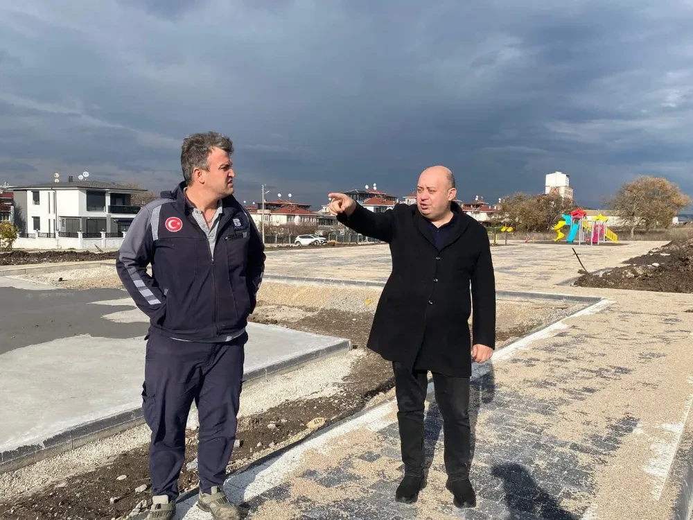 Gönen Belediye Başkanı İbrahim Palaz, 100. Yıl Mahallesi Çamlıca Sokak'ta yapımı süren yeni park ve yaşam alanı projesini yerinde inceledi.