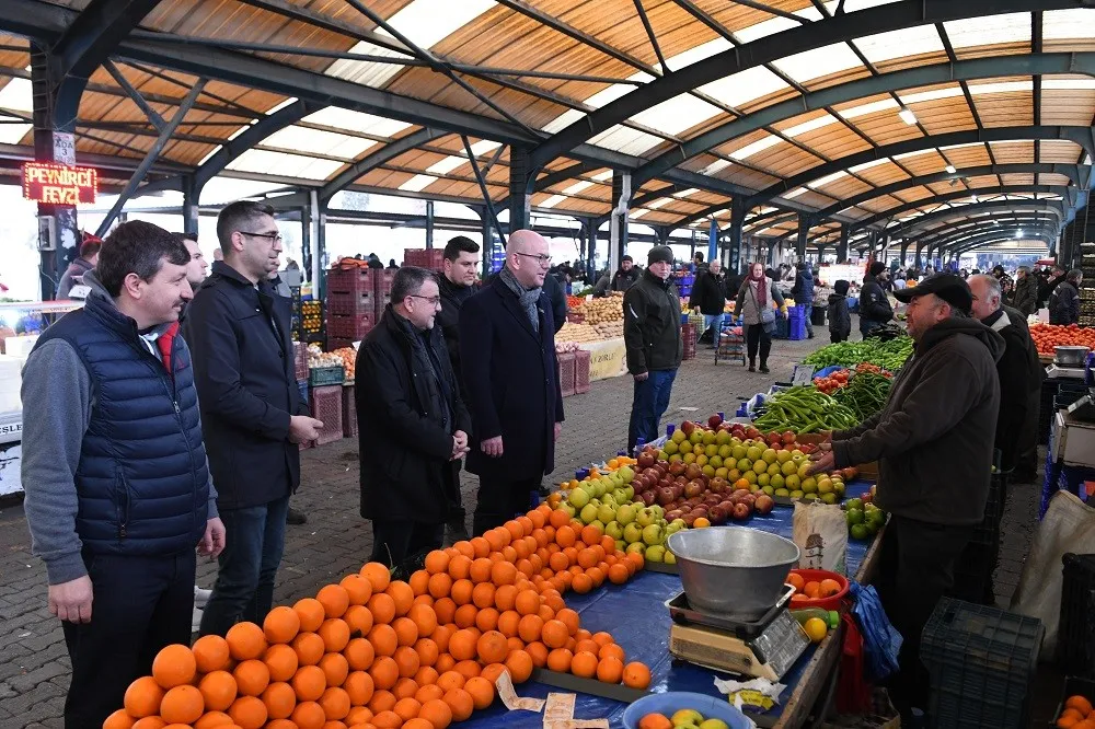 BAŞKAN ŞEHİRLİ VE MİLLETVEKİLİ SARI PAZAR PAZARINDA ESNAFI ZİYARET ETTİ