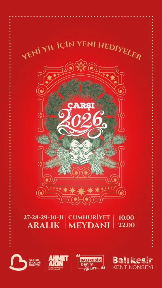 Balıkesir Büyükşehir Belediyesi ve Balıkesir Kent Konseyi iş birliğiyle 27-31 Aralık tarihlerinde düzenlenecek olan “Çarşı 2026” etkinliği için geri sayım başladı. Balıkesir Büyükşehir Belediye Başkanı Ahmet Akın’ın liderliğinde gerçekleştirilecek programda; beş gün boyunca konserler, el emeği ürün stantları ve eğlenceli atölyeler yer alacak. Binlerce vatandaş, yeni yıl öncesi gerçekleştirilecek etkinliklerle yeni yılın heyecanını birlikte yaşayacak.