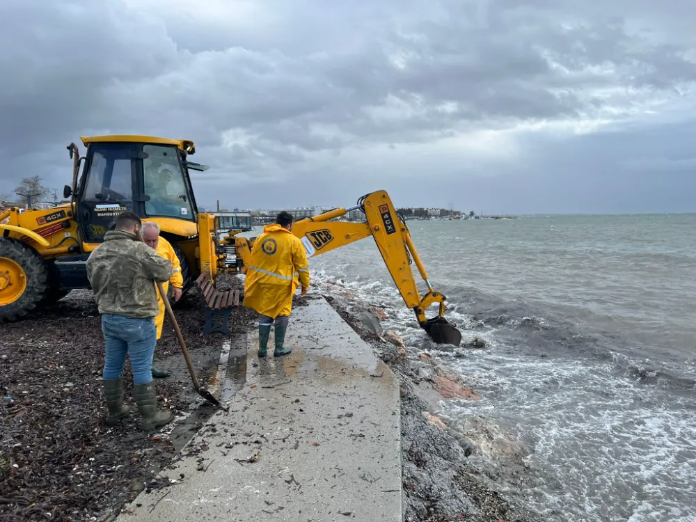 Edremit Belediyesi ekipleri, kentte etkili olan şiddetli fırtına ve sağanak yağışın ardından oluşan olumsuzluklara karşı gece saatlerinden itibaren sahadaki çalışmalarını aralıksız sürdürüyor. Yağış nedeniyle tıkanan yağmur suyu çıkışlarına müdahale eden ekipler, su birikintilerinin neden olduğu sorunları kısa sürede giderdi.