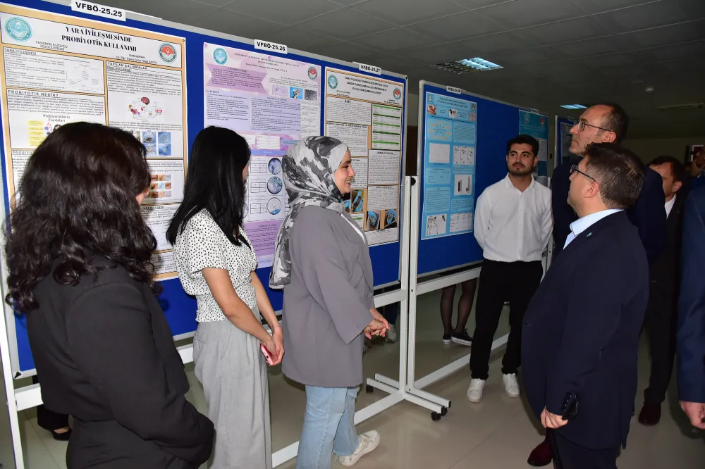 Veteriner Fakültesi Dekanı Prof. Dr. Ziya İlhan’ın eşlik ettiği Rektör Prof. Dr. Yücel Oğurlu, poster sunumlarını hazırlayan öğrenciler ile görüşerek, gerçekleştirdikleri çalışmaları hakkında detaylı bilgi aldı. Üniversite yönetimi olarak öğrencilerin akademik çalışmalarını yakından takip ettiklerini ve desteklediklerini vurgulayan Rektör Prof. Dr. Yücel Oğurlu, çalışmaları dolayısıyla intörn öğrencileri ve öğrencilere rehberlik eden öğretim üyelerini tebrik etti.