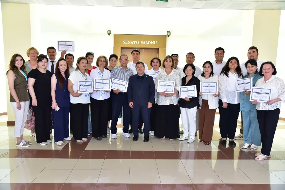 Balıkesir Üniversitesi (BAÜN) ile Özbekistan Urgench Branch of Tashkent Medical Academy iş birliğinde yürütülen program kapsamında Balıkesir’de bulunan Özbekistanlı sağlık heyeti, iki haftalık uygulamalı eğitim sürecini tamamladı. Balıkesir Üniversitesi Hastanesinin çeşitli birimlerinde yürütülen gözlem ve uygulama eğitimlerinin ardından, programda yer alan 15 kişilik heyete katılım sertifikaları düzenlenen törenle takdim edildi.